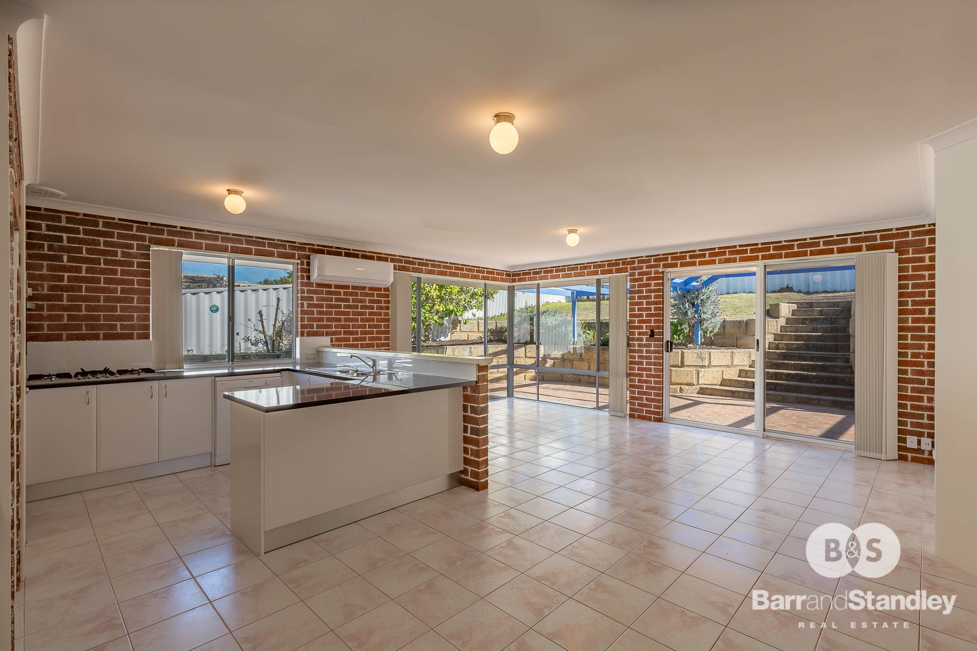 *Large separate tiled open plan living areas with built-in bar, tile fire and gas connection