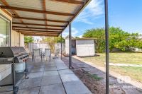 One carport and one open garage with access through to a large back lawn with beautiful fruit trees